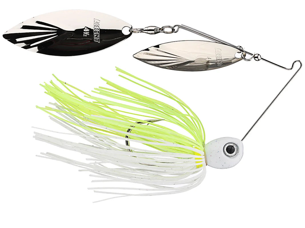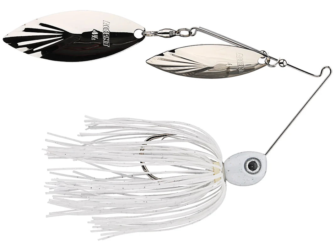 Endorsed by 3-time Bassmaster Classic Qualifier, Mark Dove, the Accent Mark Dove River Special Double Willow Spinnerbait was designed for catching finicky fish on pressured waters like the Ohio River. Its compact profile is great for targeting fish that won’t go near larger presentations, and its premium double willow blade design delivers an enticing flash on the fall and as you retrieve it through the water column. Also equipped with a durable, chip resistant head and 3D eyes, as well as, a high quality silicone skirt, the Accent Mark Dove River Special Double Willow Spinnerbait has been catching fish all over the Country for years.