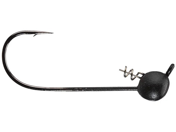 The Shaky Head features Owner's TwistLOCK "Centering-Pin-Spring" (CPS - Patent Pending) molded into the lead. Small diameter finesse baits can be "permanently" secured by inserting the pin in the center of the nose of the soft plastic, which can then be twisted (Screwed) onto the TwistLOCK coil spring to rig perfectly every time! Ideal for weedless-style Texas Rig'n, and on the bottom, contoured jig head "rocks" forward to present baits in a tantalizing nose-down position. Round bend, light wire hook has a 45° cross eye, Super Needle Point and a black chrome finish. All weights come with a 4/0 hook and 4 per pack.